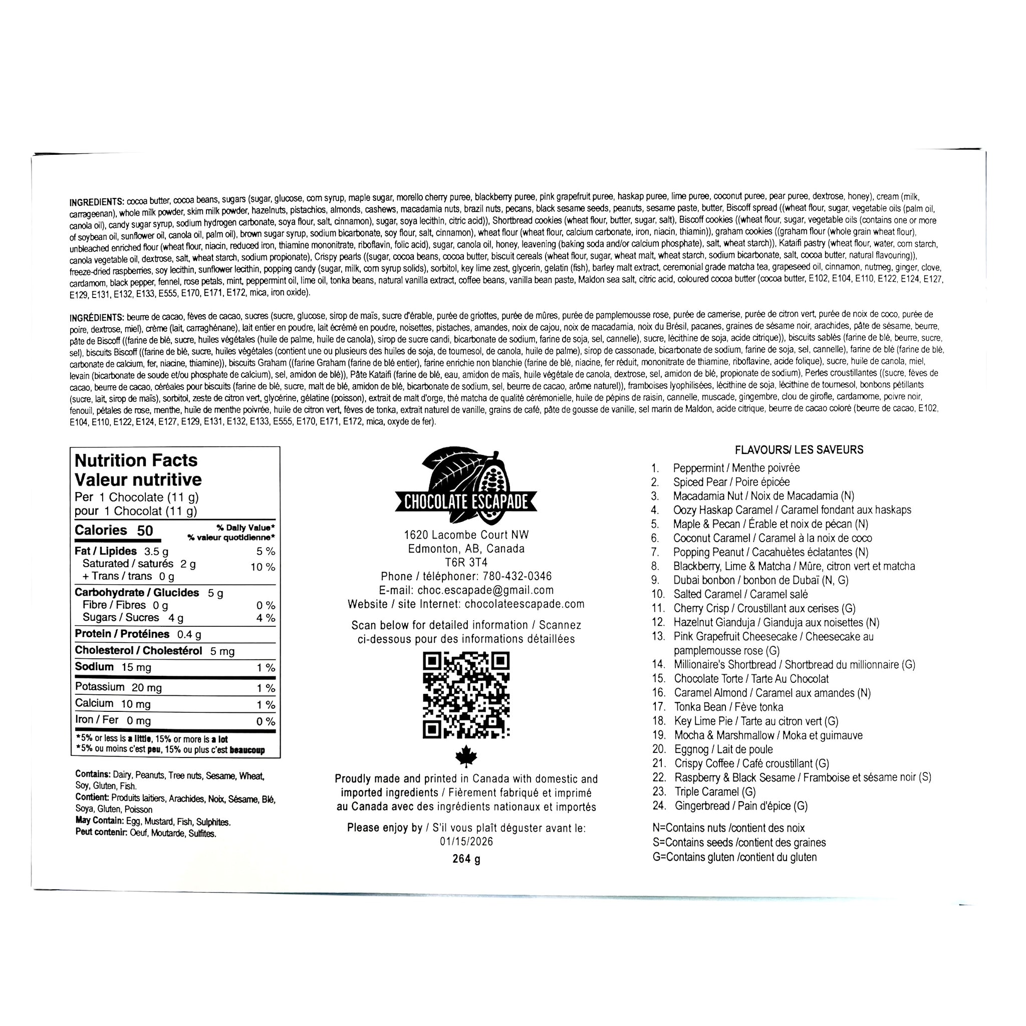 Click here for the ingredients for each chocolate.