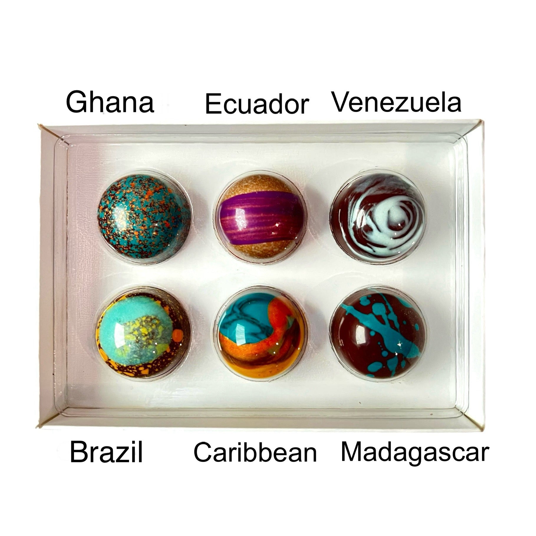 Explore the unique flavour profiles of cacao that is sourced from 6 different regions of the world. This dark chocolate collection is comprised of silky smooth ganaches made with single origin Valrhona couverture chocolate for the ultimate indulgence.