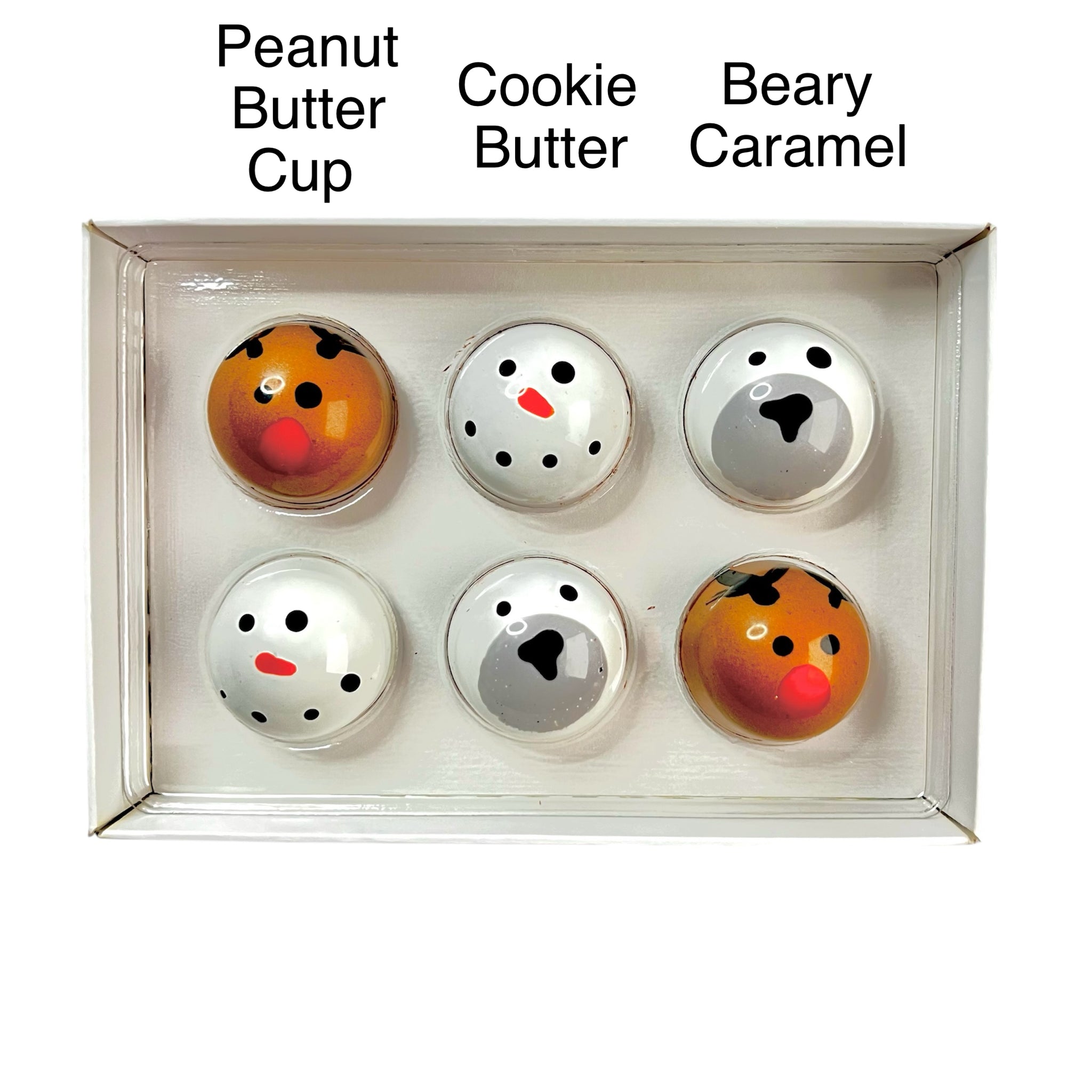 Capture that festive feeling with these adorable and delicious chocolate bonbons. Each collection contains 2 each of the following 3 flavours: