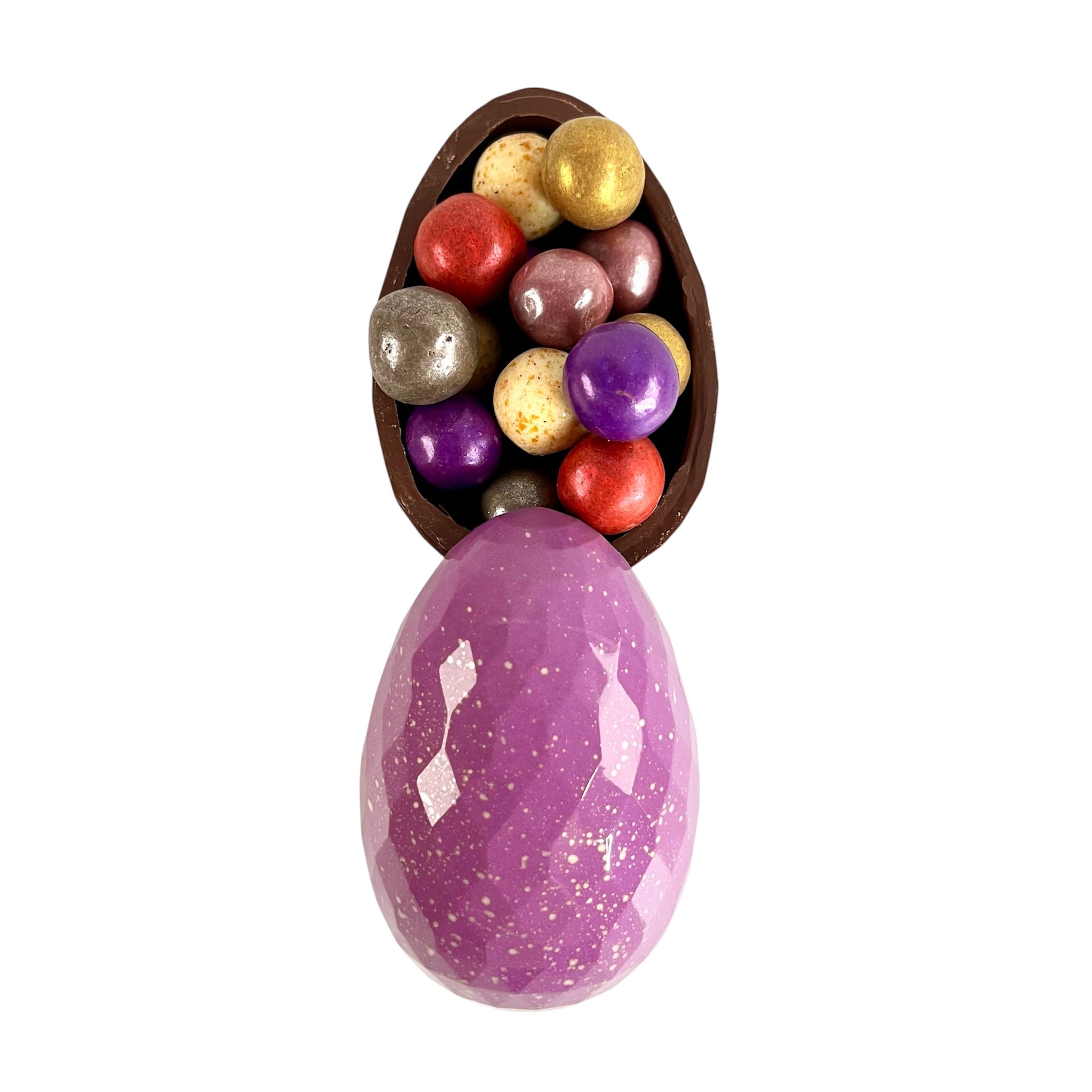 Our super-popular small smash egg returns this year! This beautifully hand-crafted milk chocolate egg is painted with coloured cocoa butter and filled with a delicious surprise. We used our beloved Valrhona (France) caramel chocolate for the shell again this year. It’s so rich and complex because it’s made with real caramel.